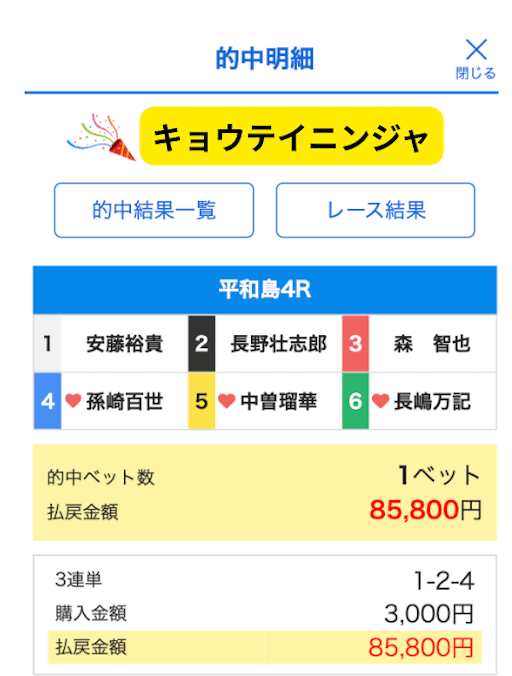 これで、競艇ニンジャは5戦で4勝という素晴らしい成績を収めてくれた。