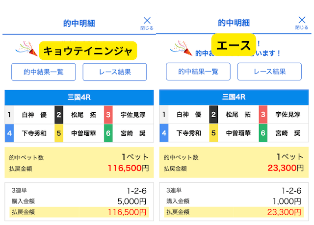 ただ、払い戻しに関しては競艇ニンジャが11万超えということで一枚上手となった。