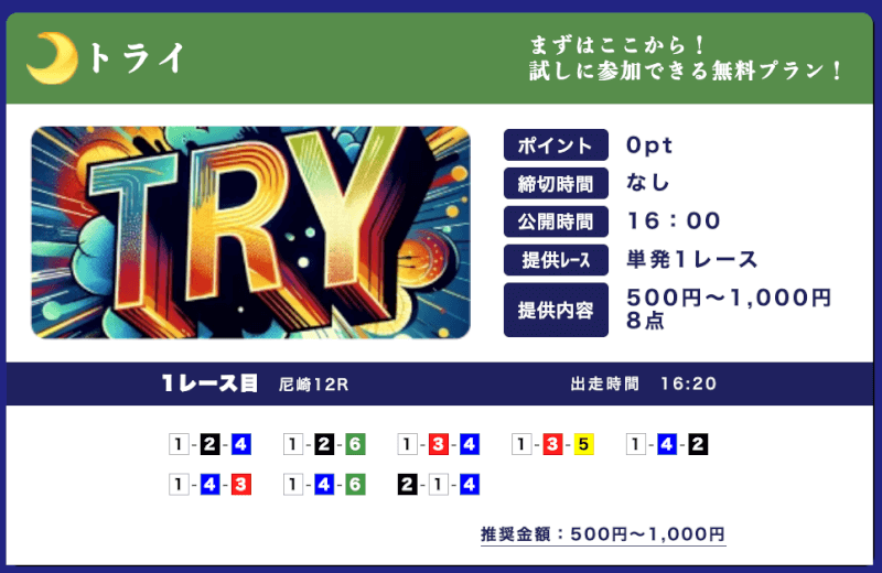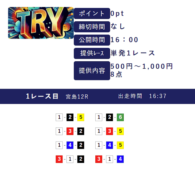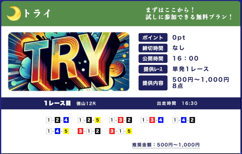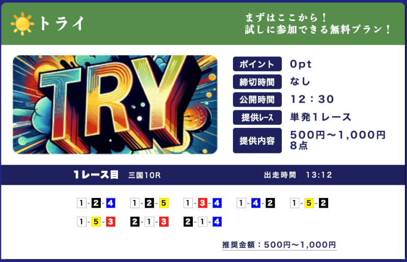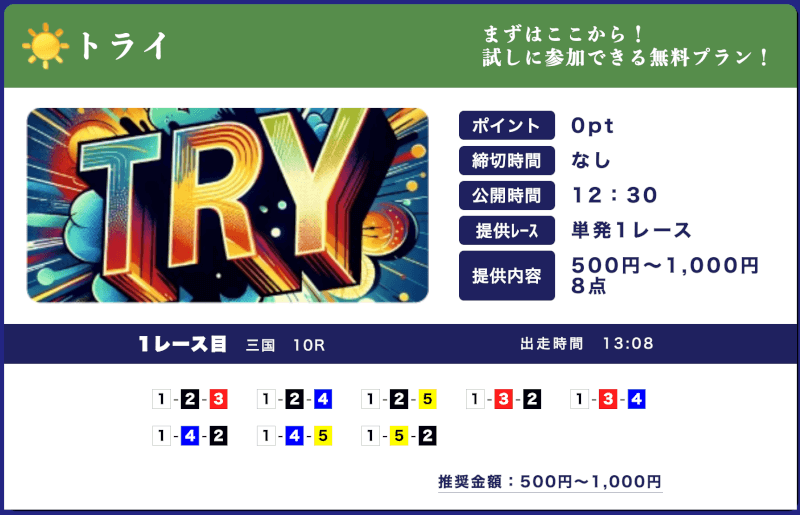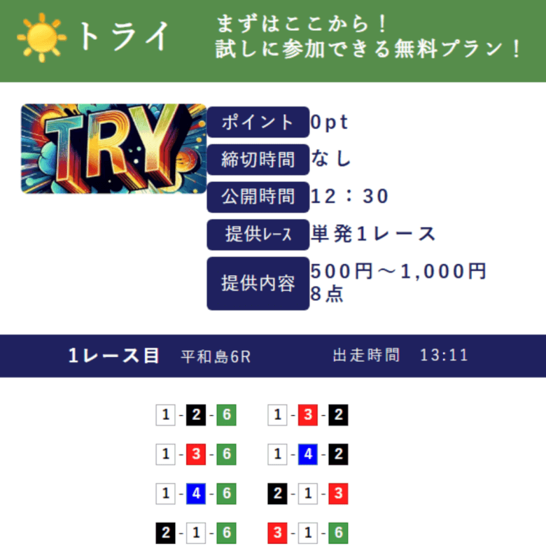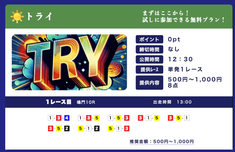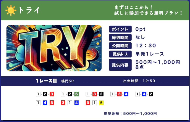 | 特徴④ | 365日無料予想を提供 |
