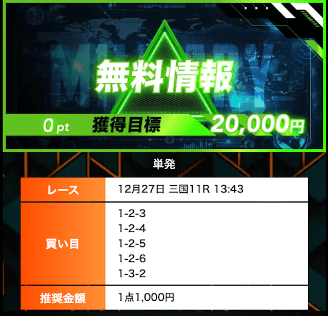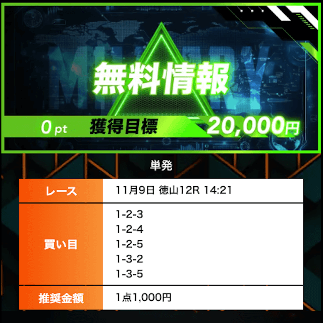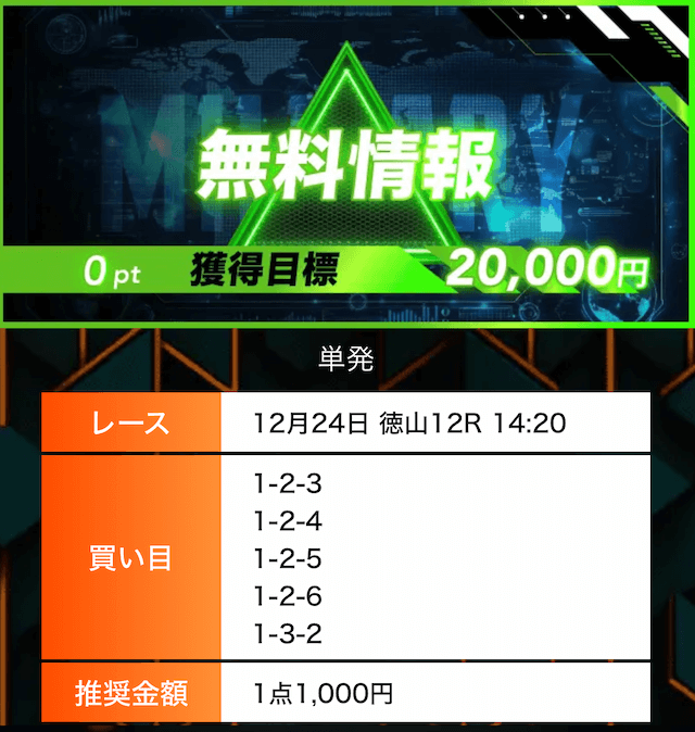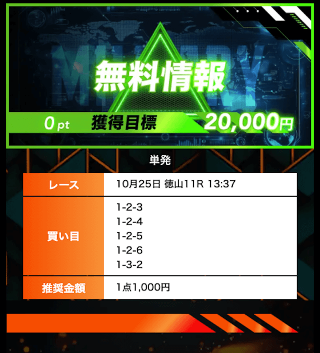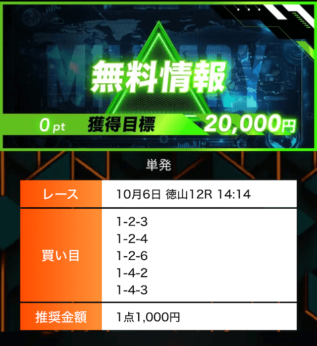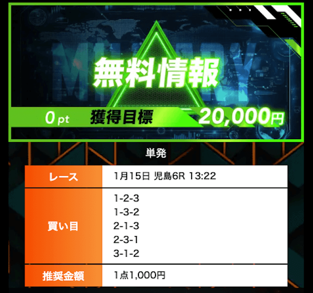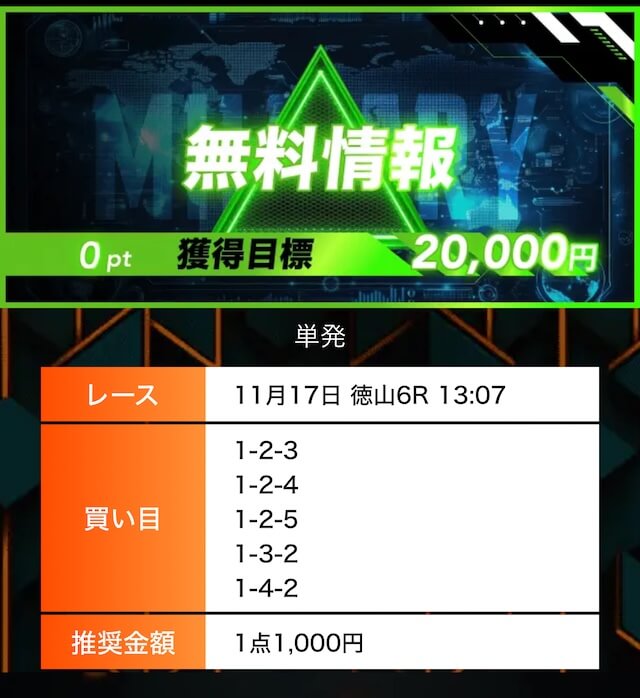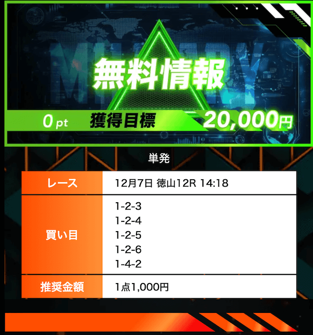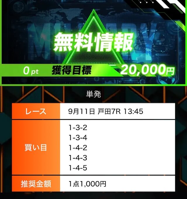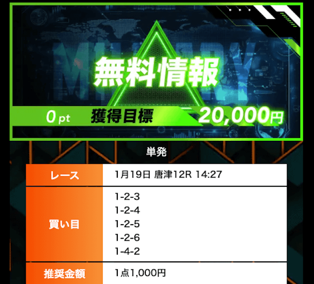 無料予想で爆発力はあんまだけど、安定感があるからめちゃくちゃ嬉しいかも。