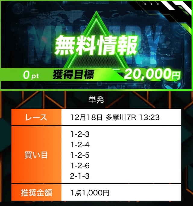 有料予想は無料予想とは異なり、予想を見るために情報料金が必要だ。