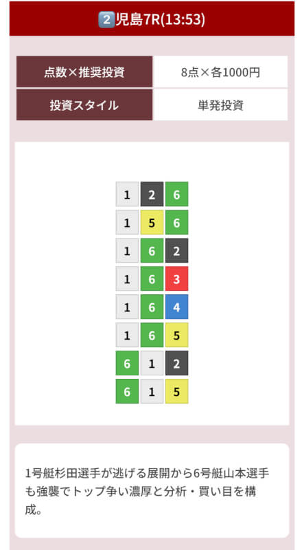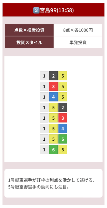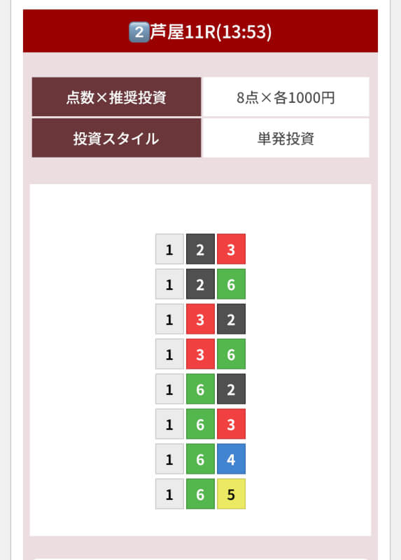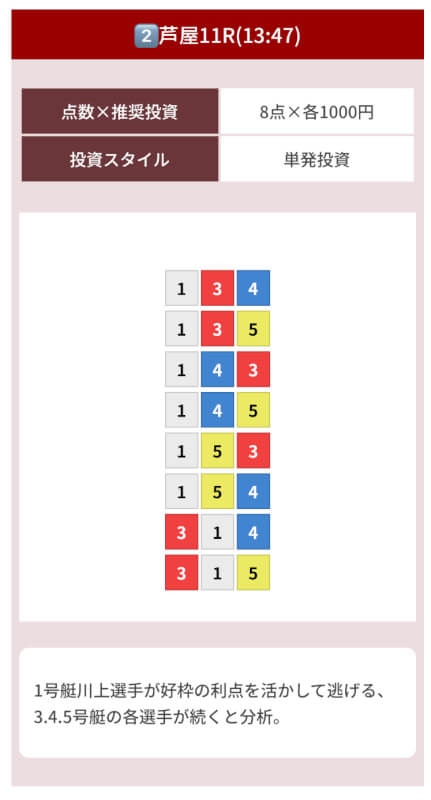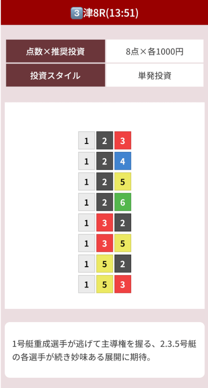 | 推奨投資金額 | 1レースあたり8,000円 |