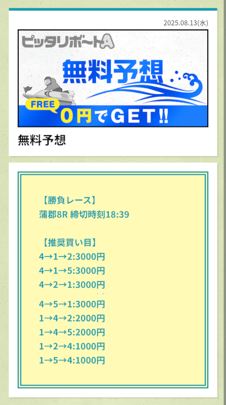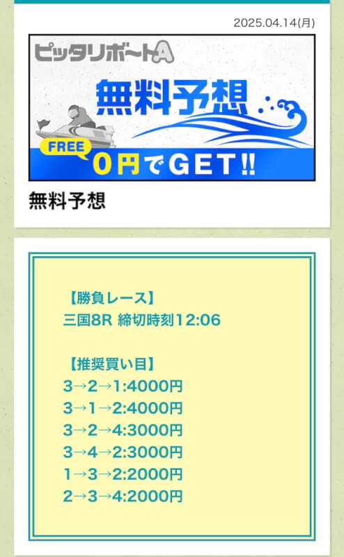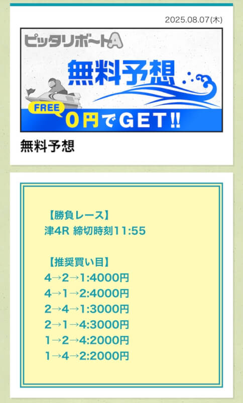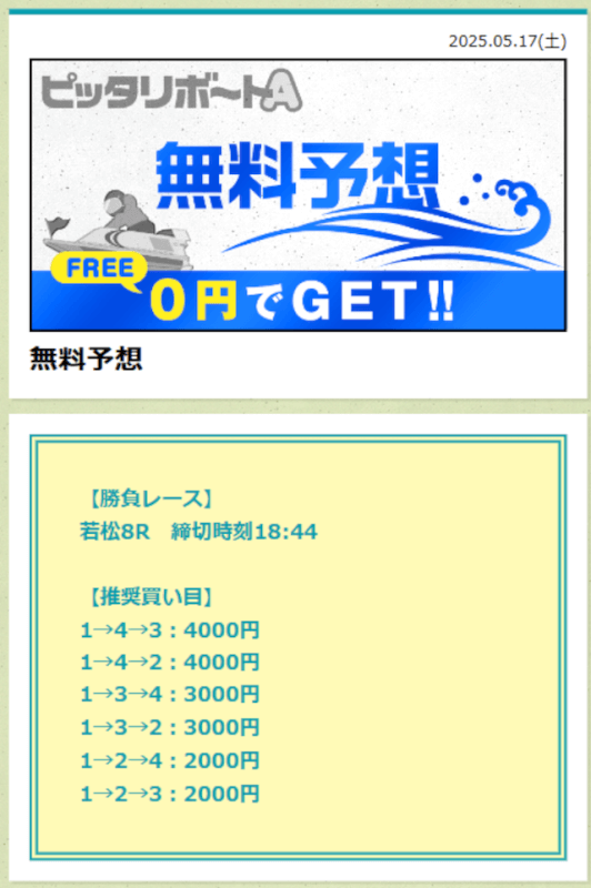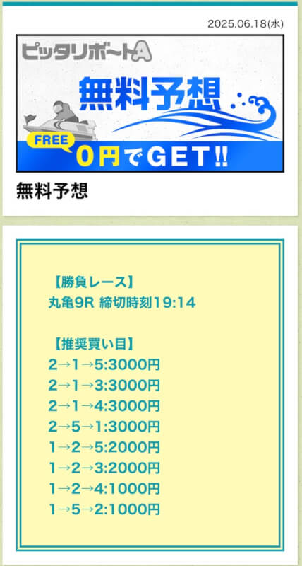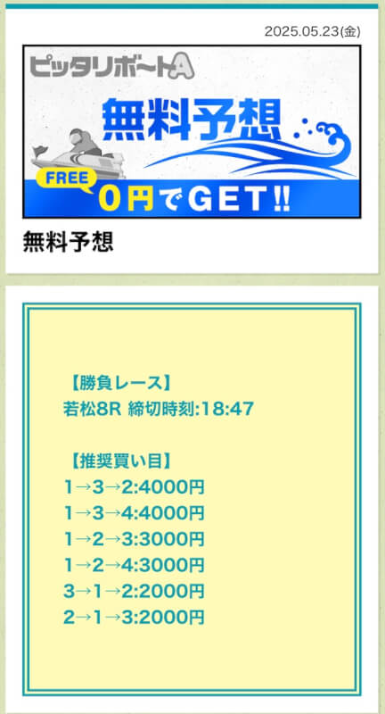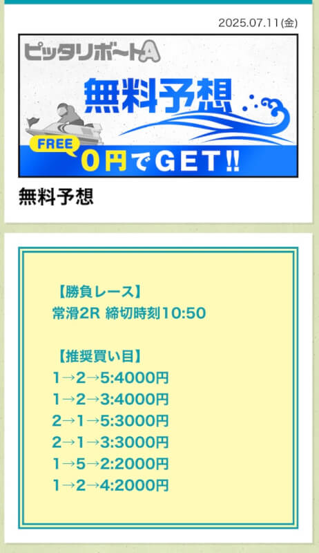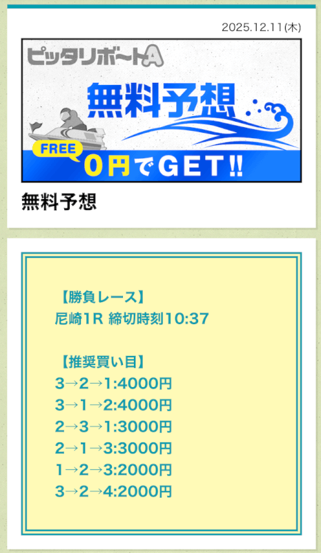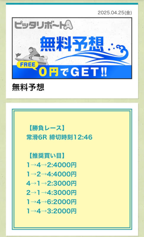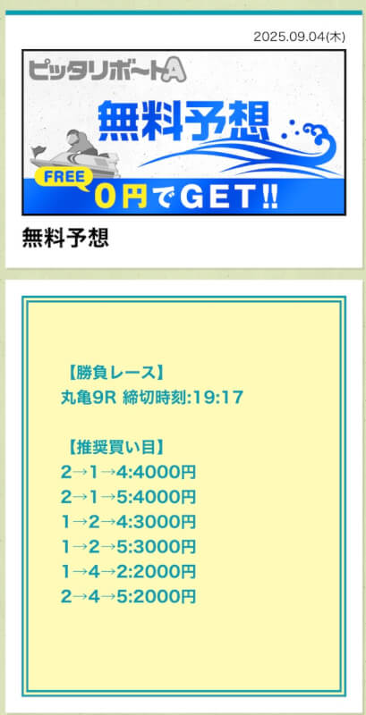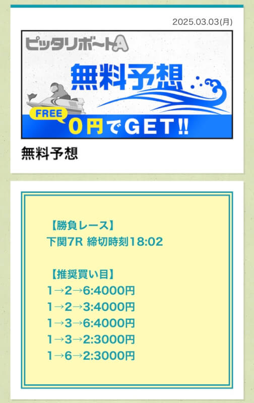 ここからは、ピッタリボートAの無料予想について詳しく紹介する。