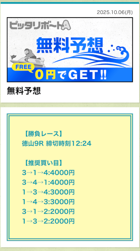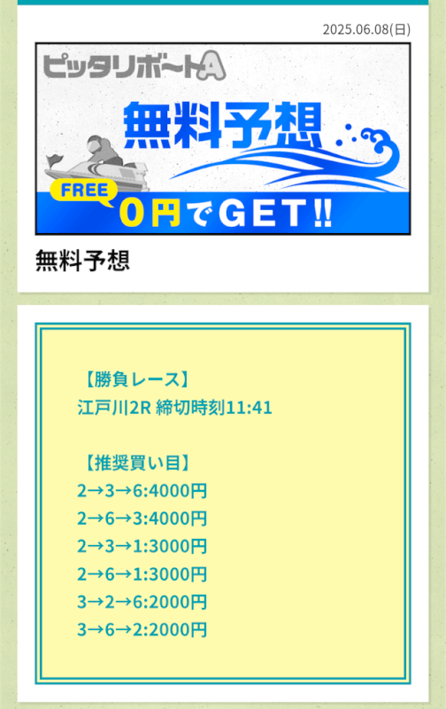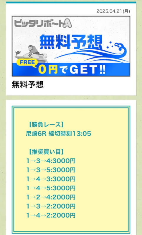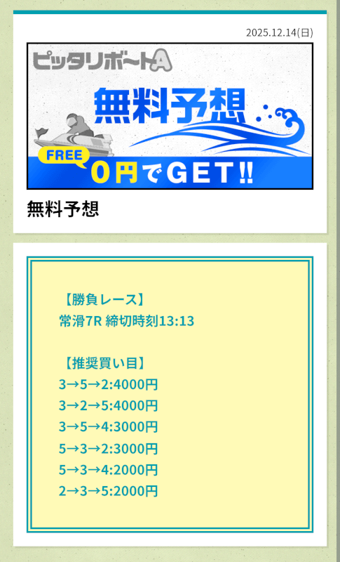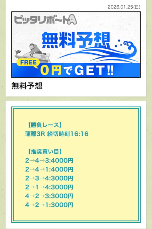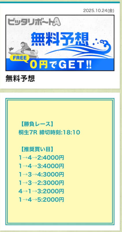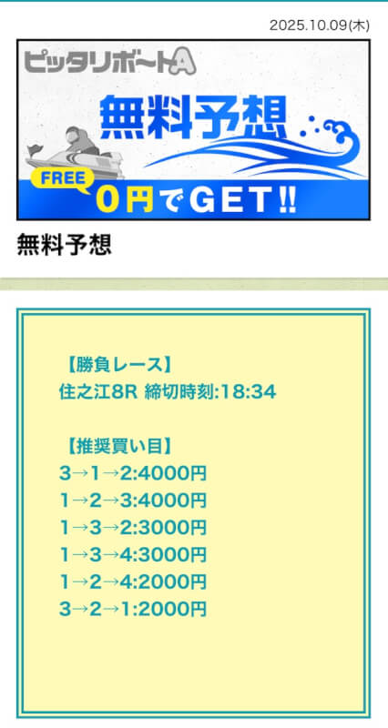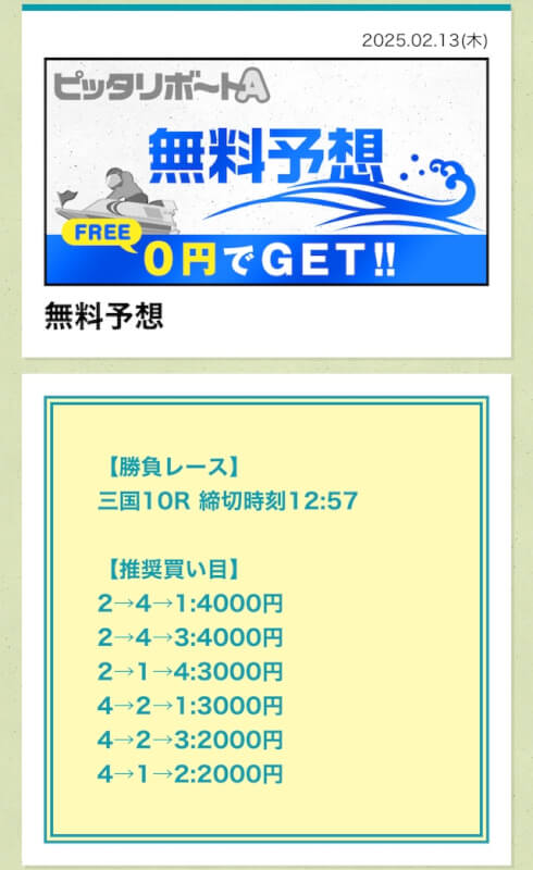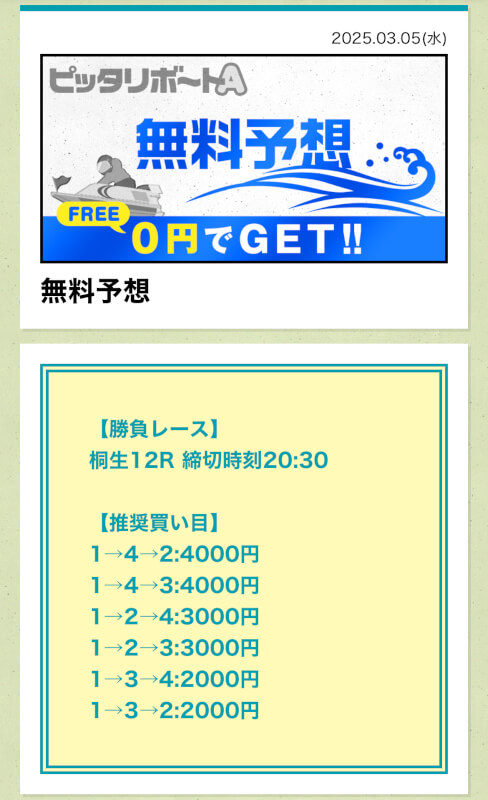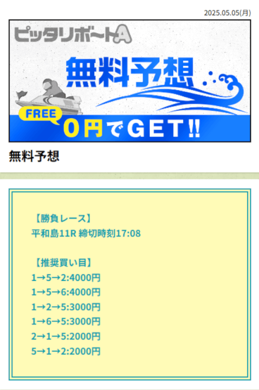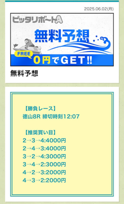 ここからは、ピッタリボートAの無料予想について詳しく紹介する。