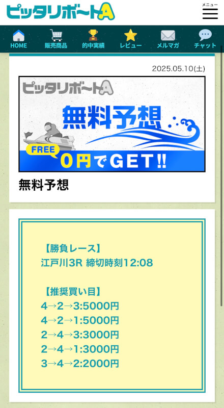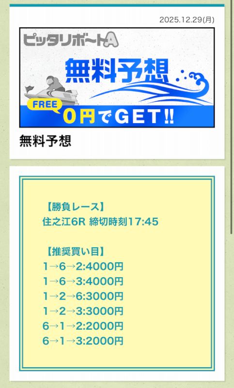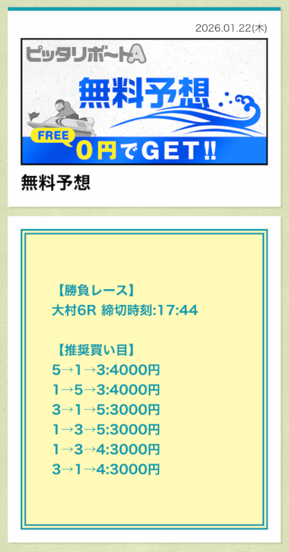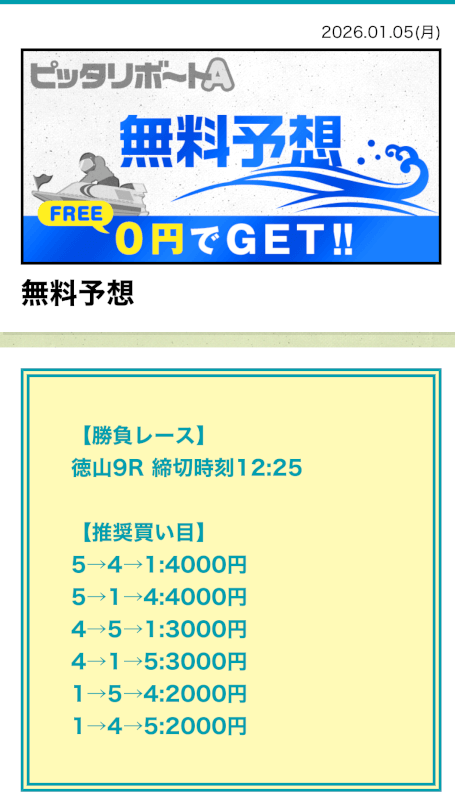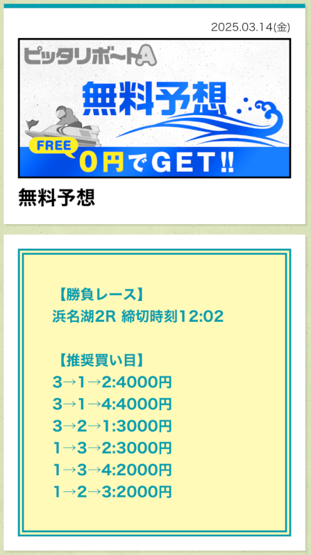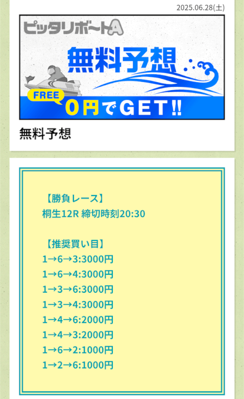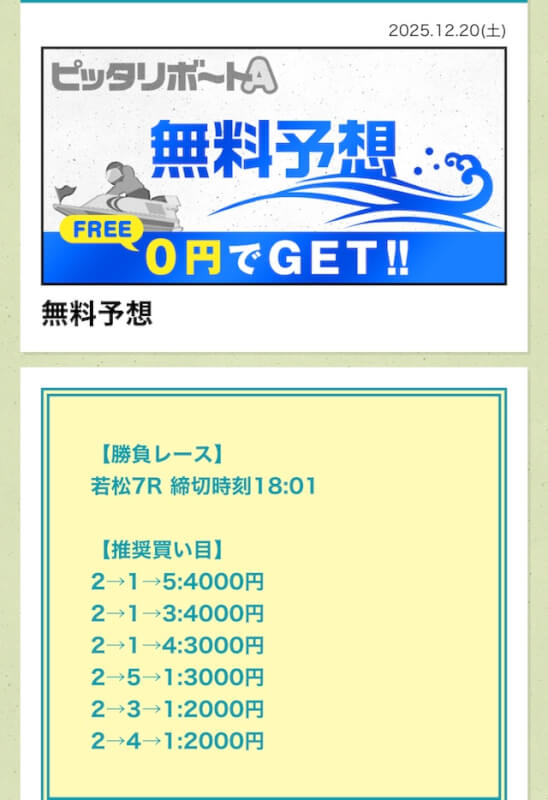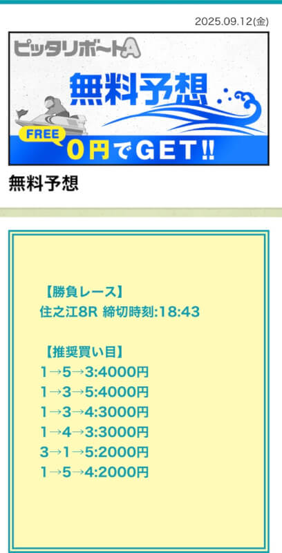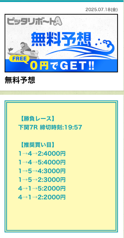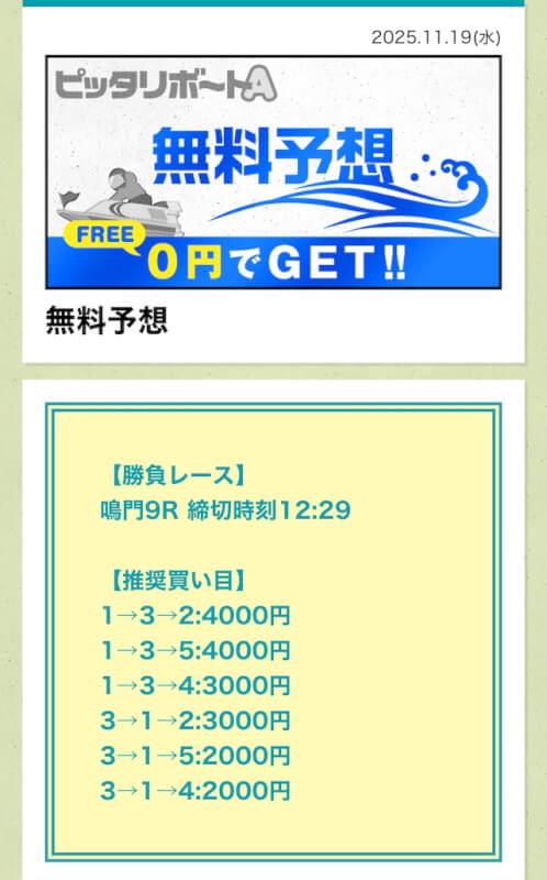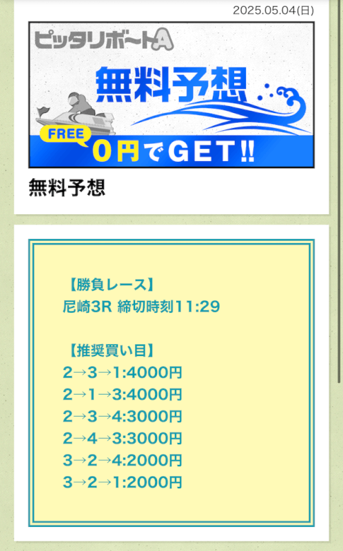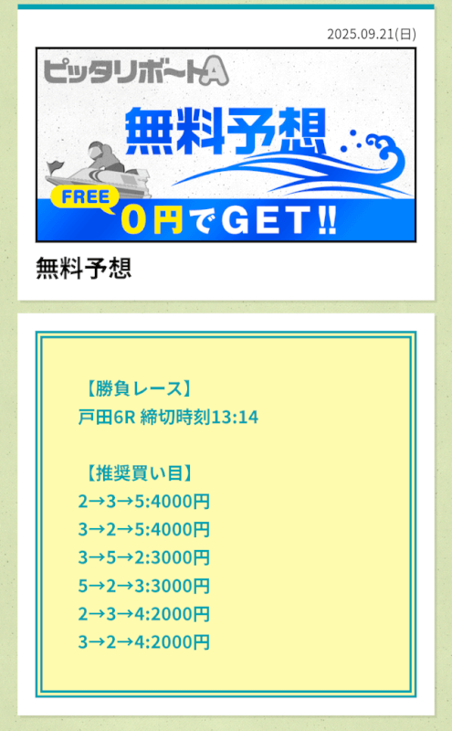 ここからは、ピッタリボートAの無料予想について詳しく紹介する。