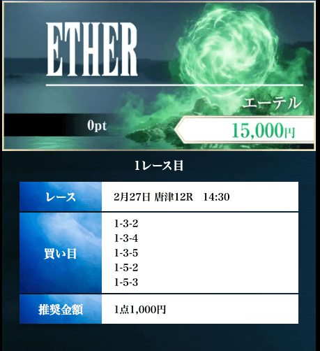 エデンプランはコロガシ2レースの予想提供なので、もう1レース勝負することができる。