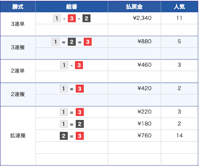 相手には②を軸に3着に広く予想、抑えとして①-③-②を選択。