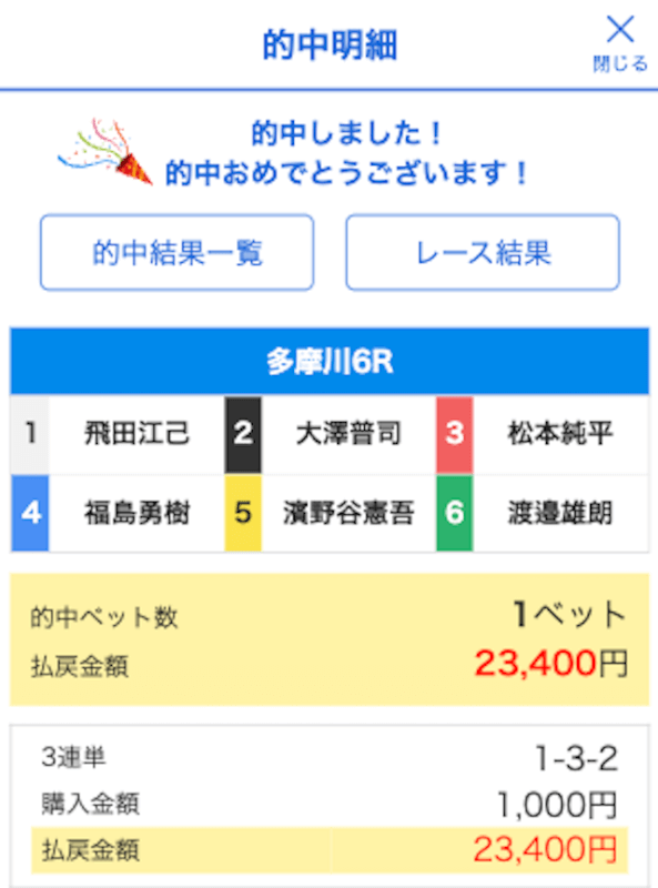 無料予想でも十分素晴らしい結果を残していたが、有料予想ではそれ以上の予想精度を見せて圧巻の払い戻しを達成。