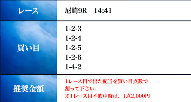 提供されたレースは先ほどの尼崎8Rに続いて尼崎9R。