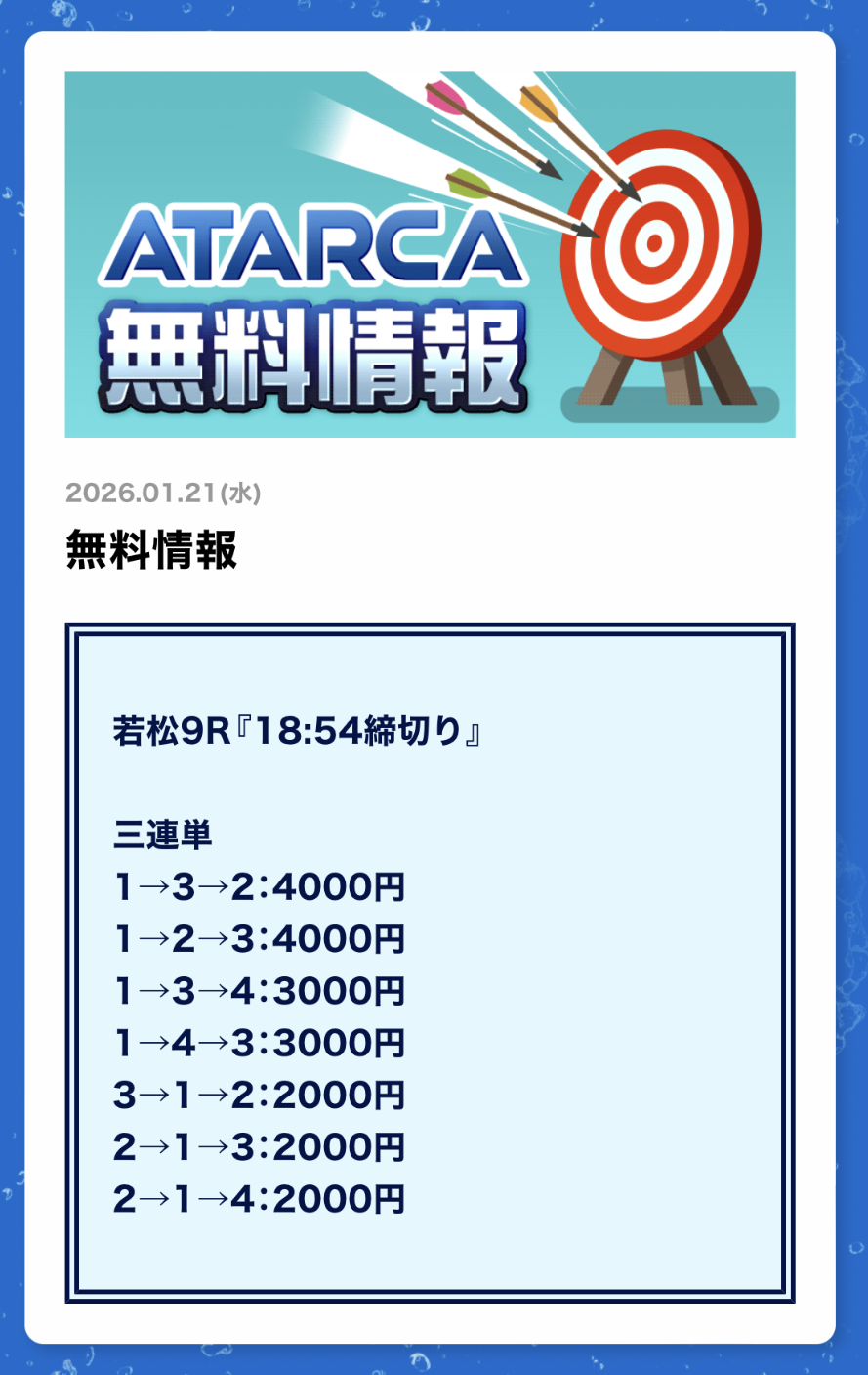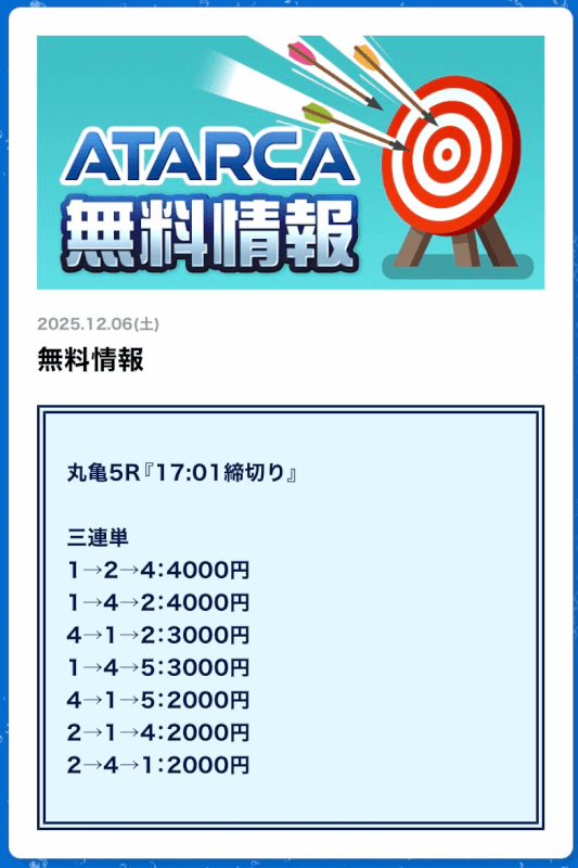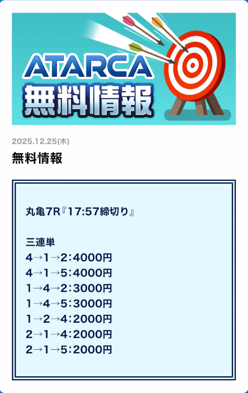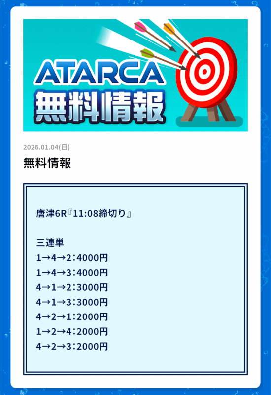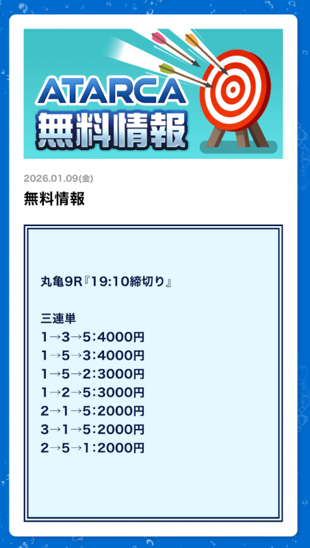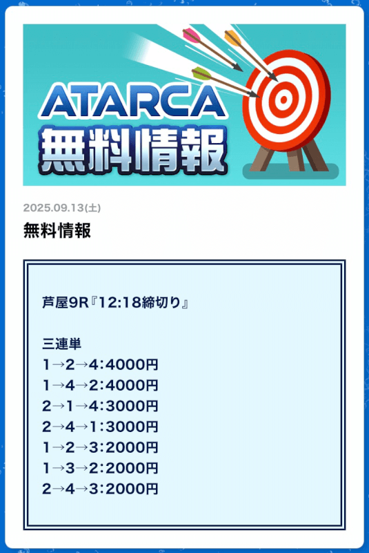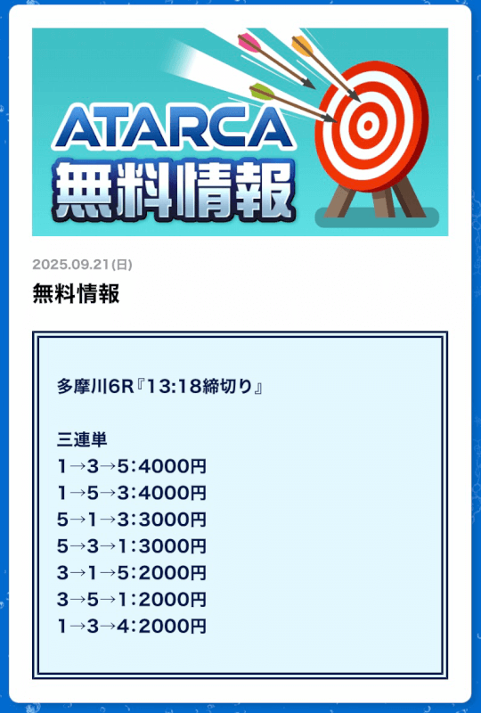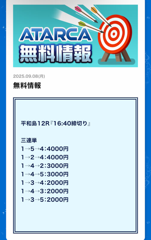 私がATARCAの無料予想に初参加したのは2025年8月21日の平和島4R。