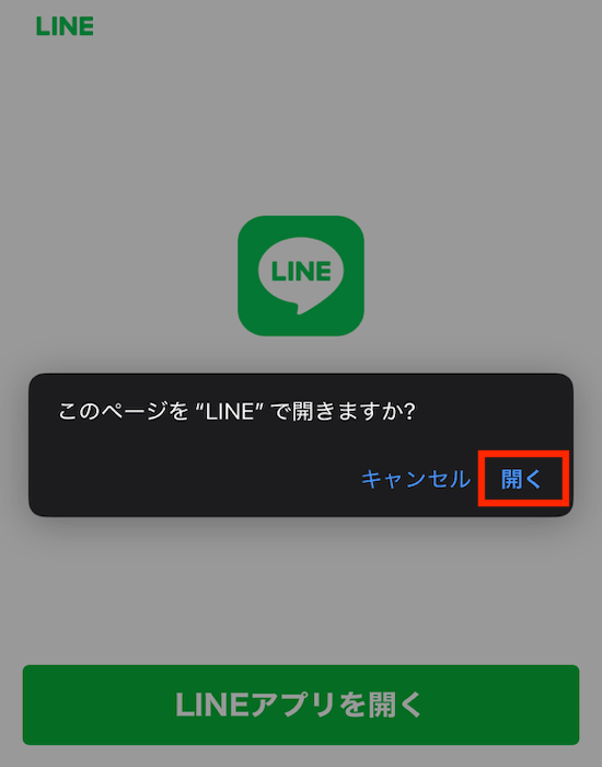 LINEで開きますかの表示が出たら『開く』をタップする!