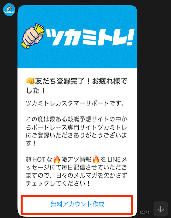 無料アカウント作成をタップ!