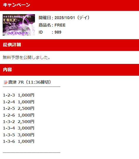 私がアルティメットボートの無料予想に初参加したのは2025年10月1日の唐津7R。