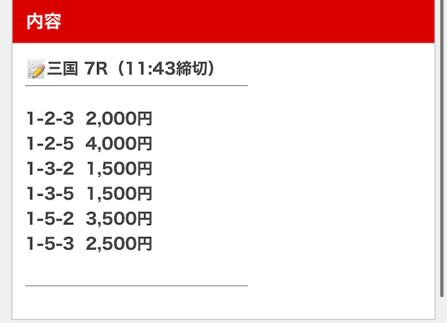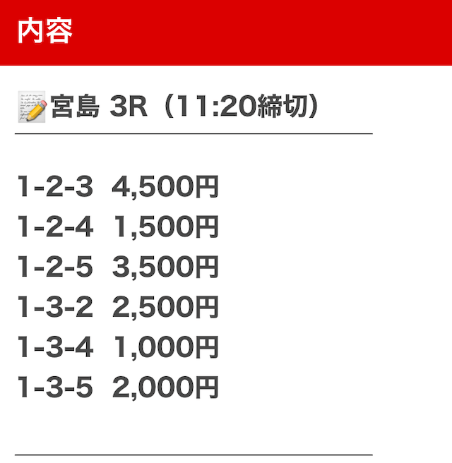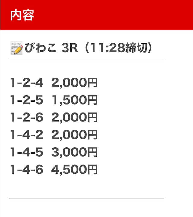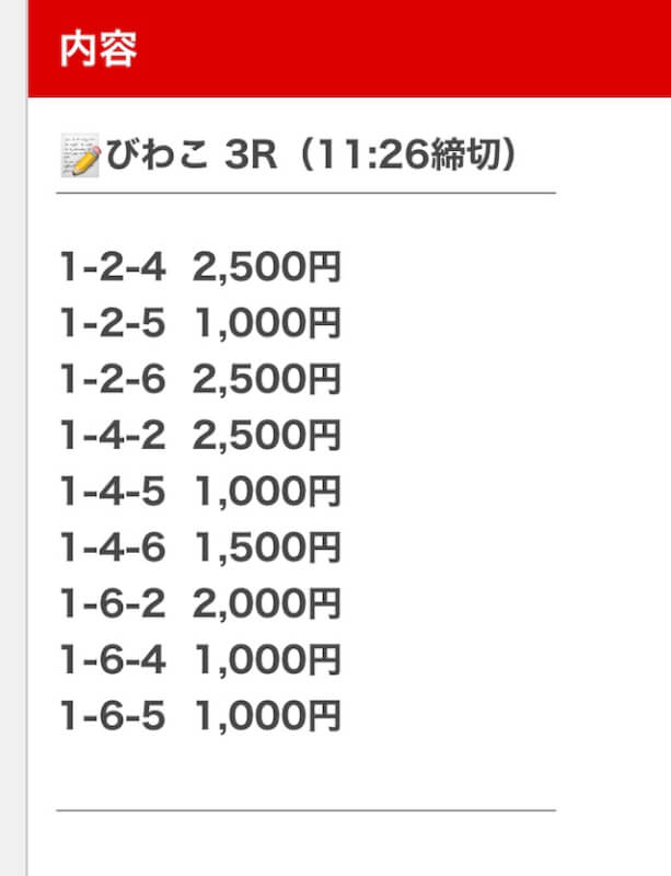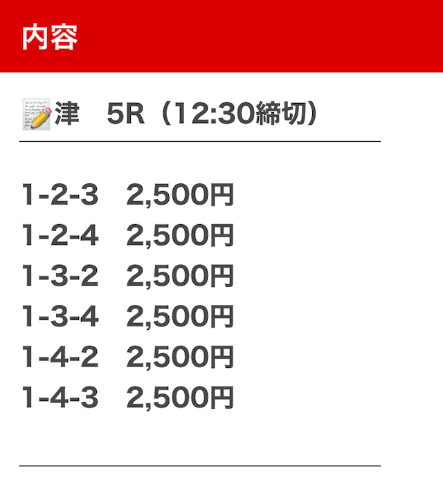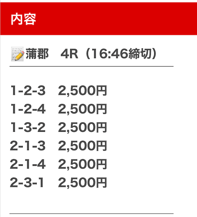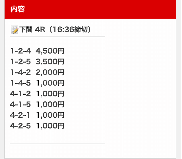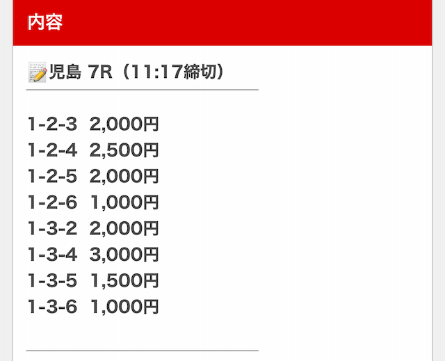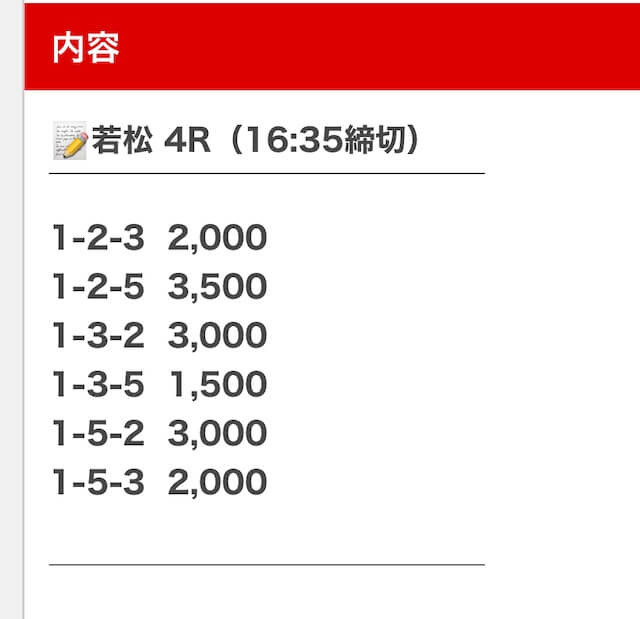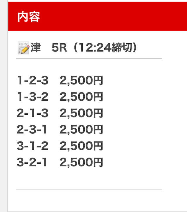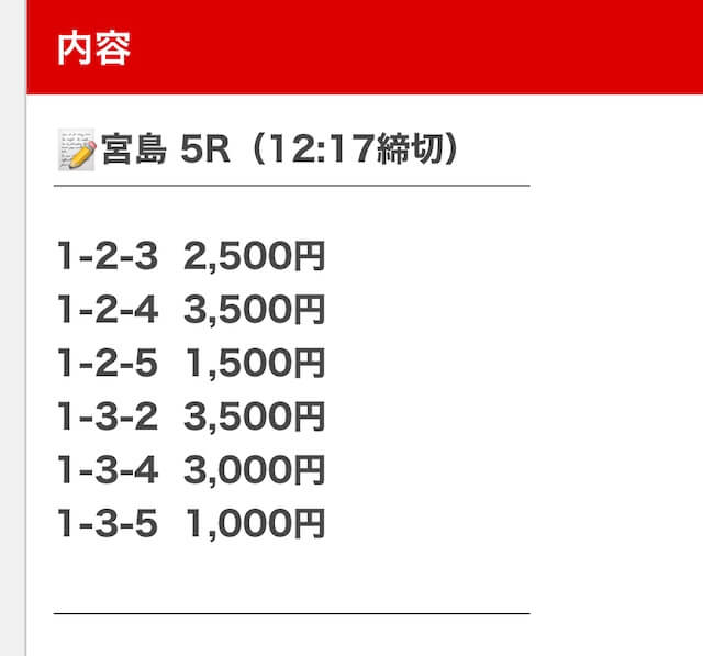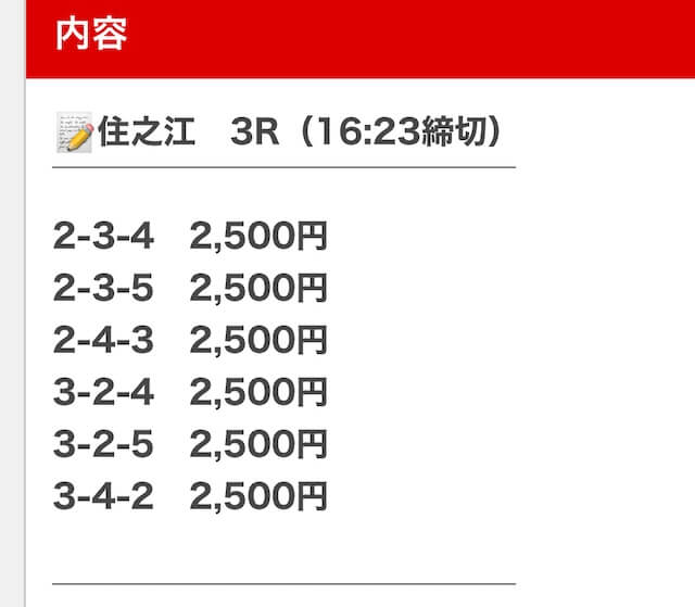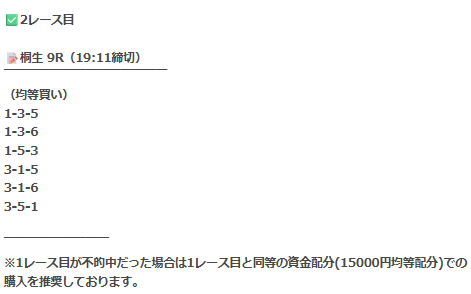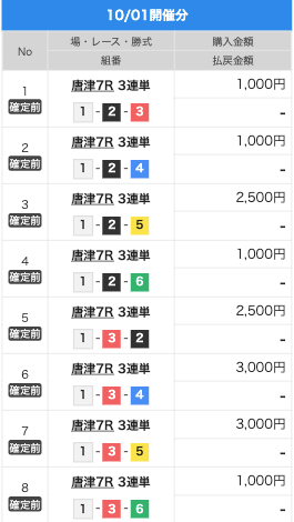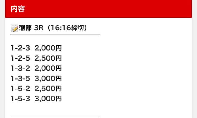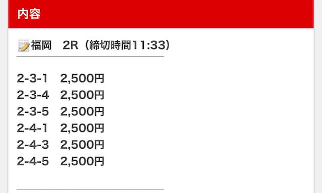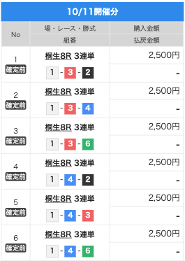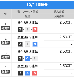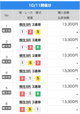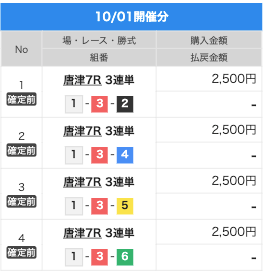 あとは、この予想が的中するかどうか、ひとまず提供された通りに買い目を購入していく。