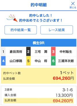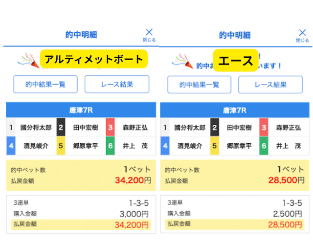 両者的中となったが、払戻金額ではアルティメットボートに軍配が上がった。