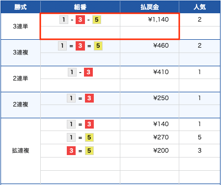 ①-②で決着すればお見事ではあるが、私も当てたいので個人的希望は①-③決着。