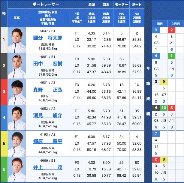 その中でも出走表から気になる選手をピックアップするとすれば、③森野正弘。