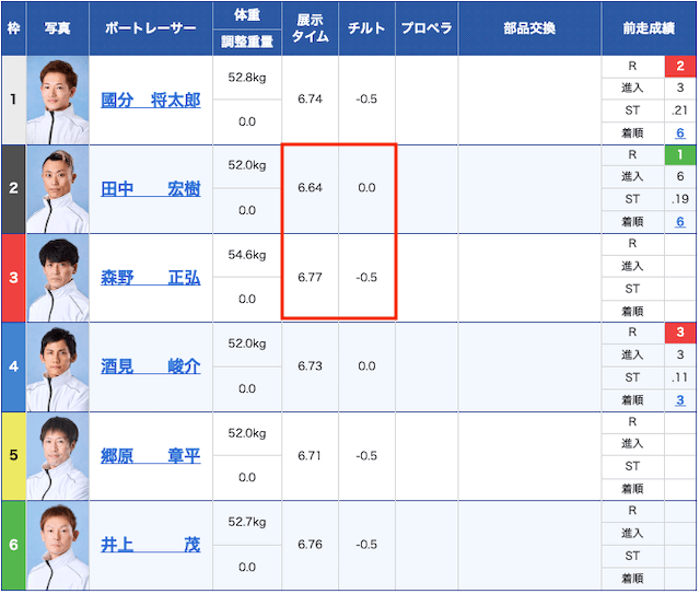 従って、前日までの2走でチルトを3度に跳ねていた田中が本レースでもチルトを上げて直まくりを狙って2着に入線する可能性を考えたのだろう。